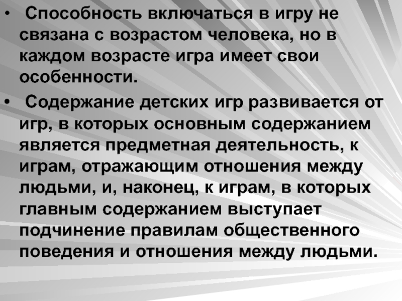 Слайд 19• Способность включаться в игру не связана с возрастом человека, но