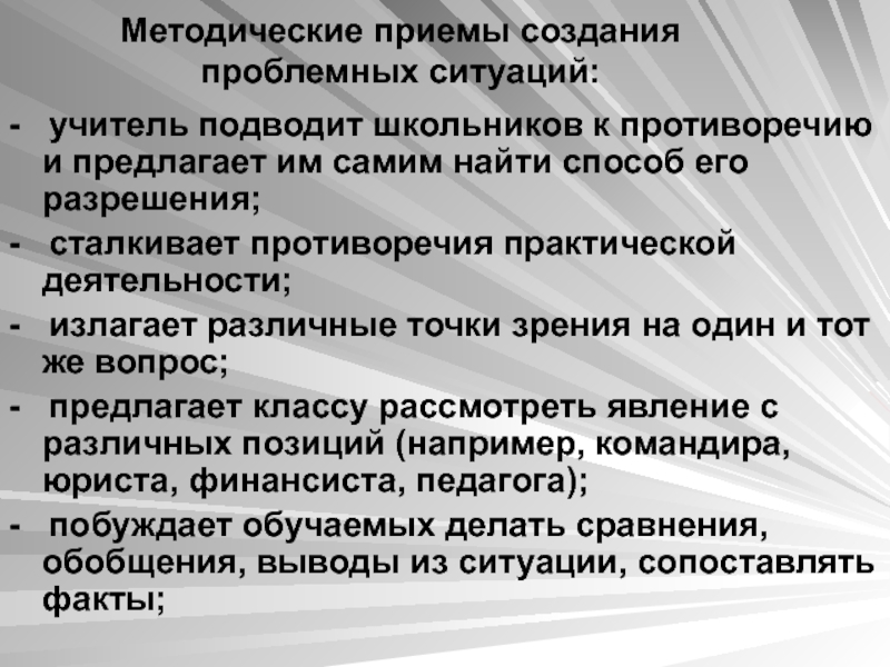 ситуаций, которые выступают как средство побуждения, стимулирования учащихся к учебной деятельности.
