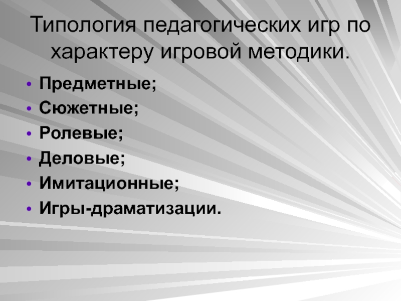 Слайд 15Типология педагогических игр по характеру игровой методики.