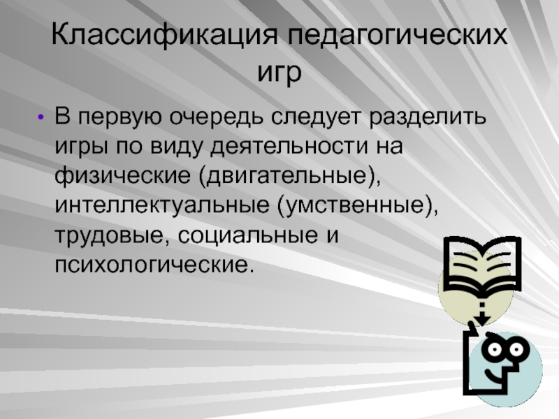 Слайд 13Классификация педагогических игр