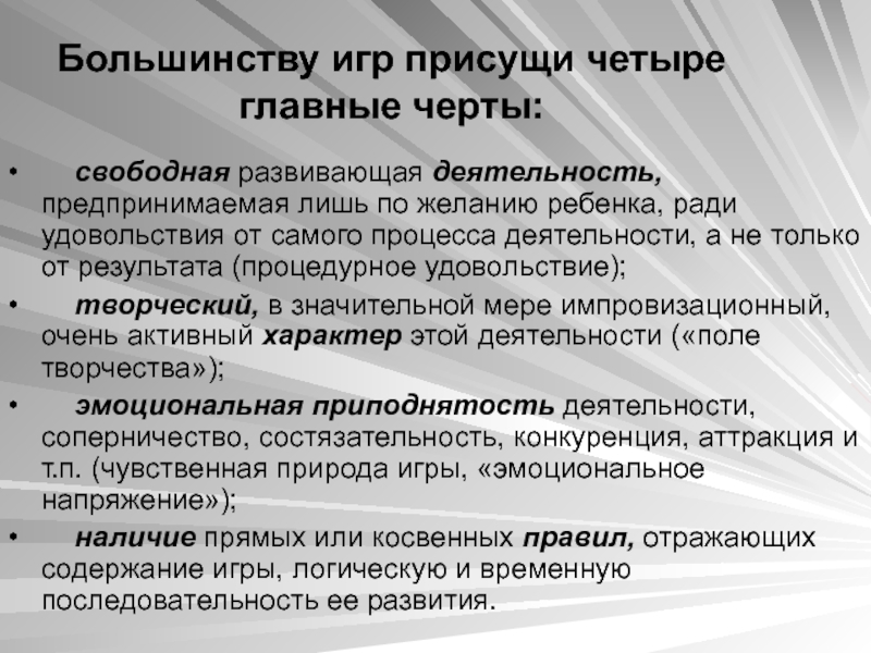 Слайд 6Большинству игр присущи четыре главные черты: