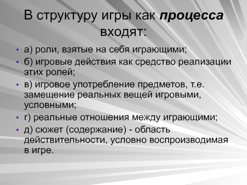 Слайд 8В структуру игры как процесса входят: