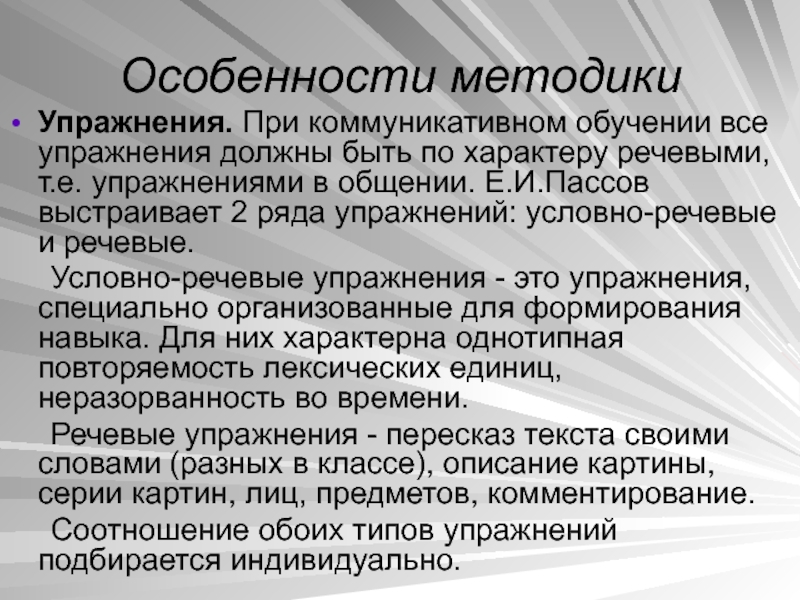 Упражнения. При коммуникативном обучении все упражнения должны быть по характеру