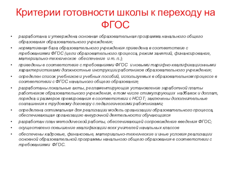 Слайд 5Критерии готовности школы к переходу на ФГОС