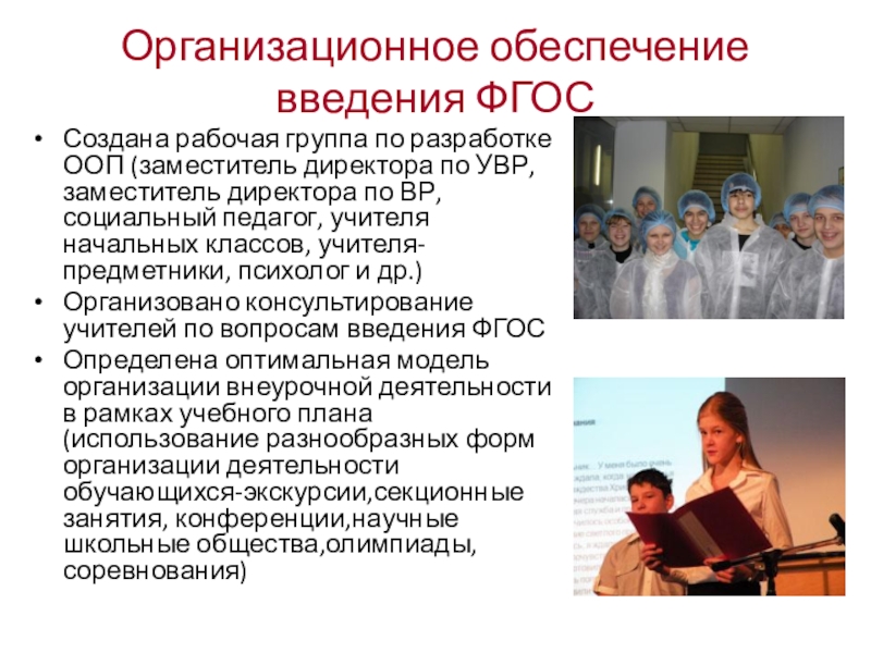 приведены в соответствие с требованиями ФГОС и новыми тарифно-квалификационными характеристиками должностные инструкции работников образовательного учреждения;