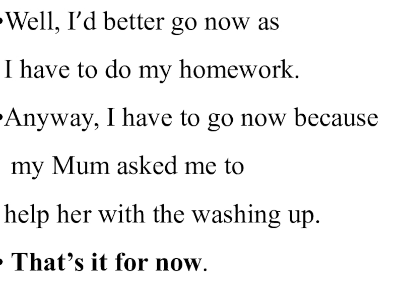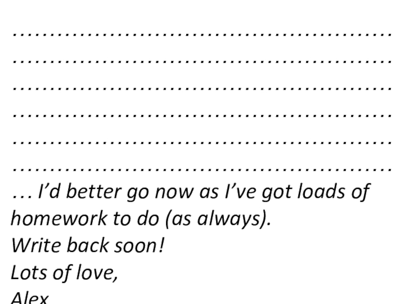 Слайд 23………………………………………………………………………………………………………………………………………………………………………………………………………………………………………………………………………………… I’d better go now as I’ve got loads of homework