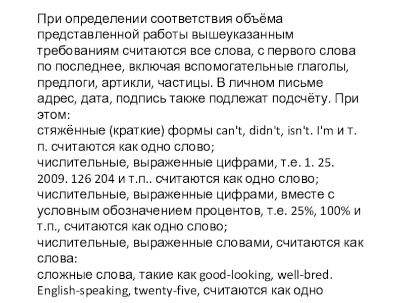 Слайд 3При определении соответствия объёма представленной работы вышеуказанным требованиям считаются все слова,
