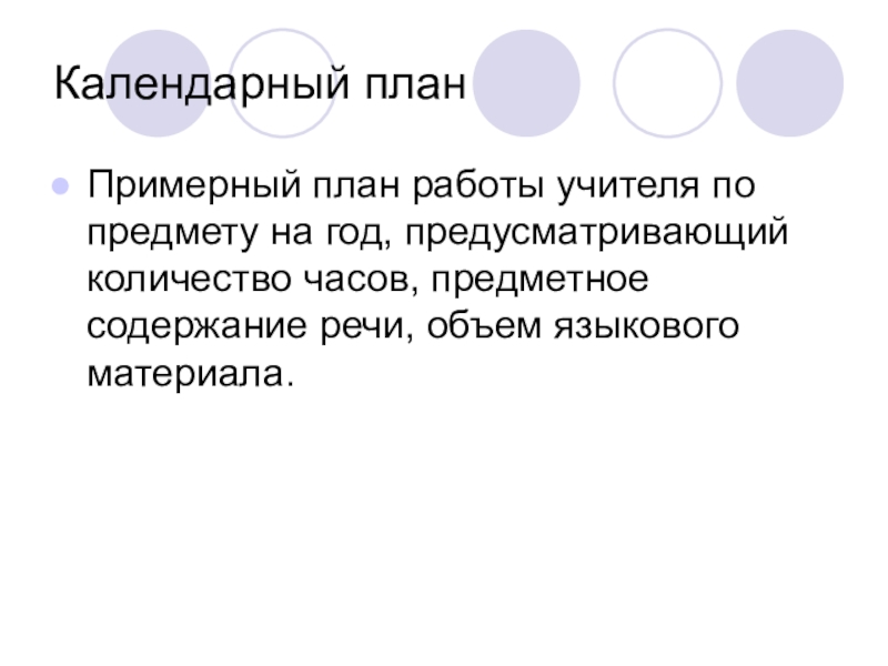 Календарный планПримерный план работы учителя по предмету на год, предусматривающий количество часов, предметное содержание речи, объем языкового