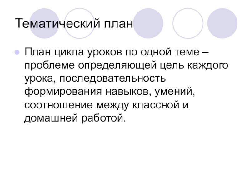 Тематический планПлан цикла уроков по одной теме – проблеме определяющей цель каждого урока, последовательность формирования навыков, умений,
