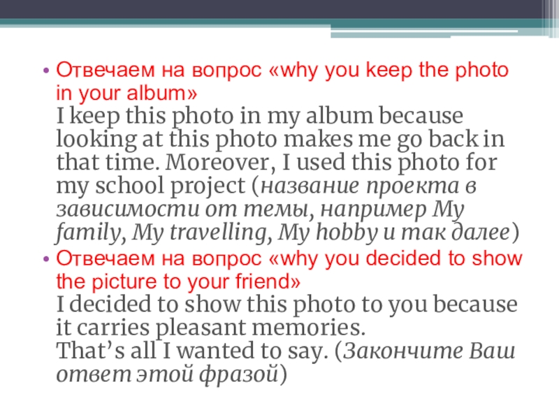 Слайд 8Отвечаем на вопрос «why you keep the photo in your album»