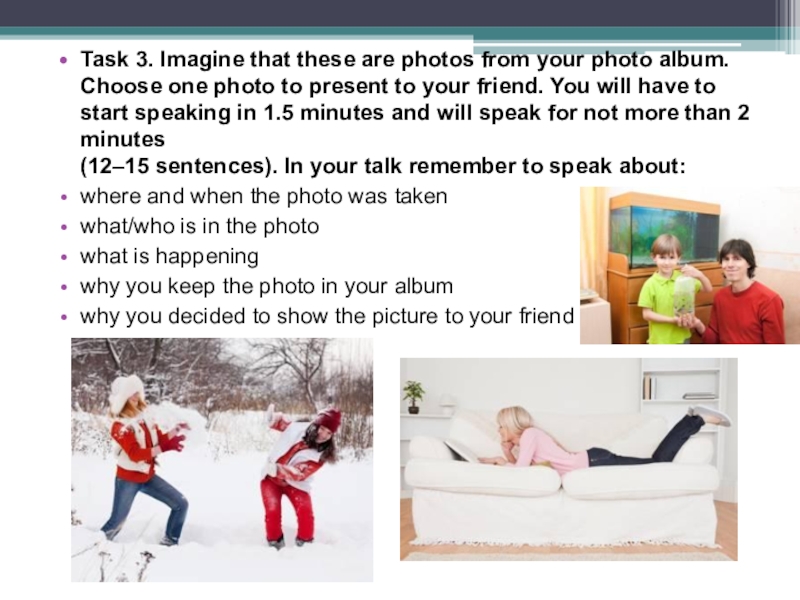 Слайд 19Task 3. Imagine that these are photos from your photo album. Choose