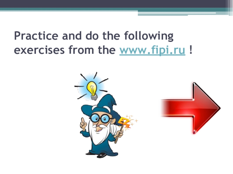Слайд 18Practice and do the following exercises from the www.fipi.ru !