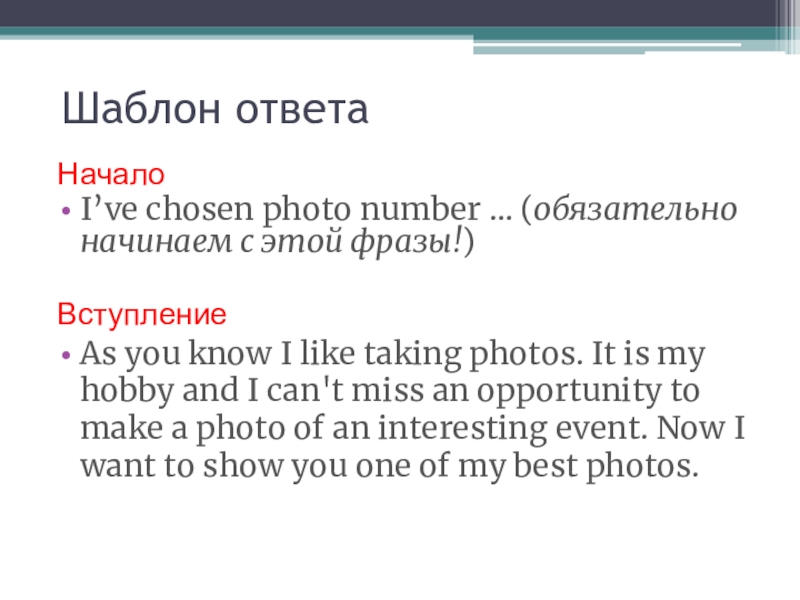 I’ve chosen photo number … (обязательно начинаем с этой фразы!)