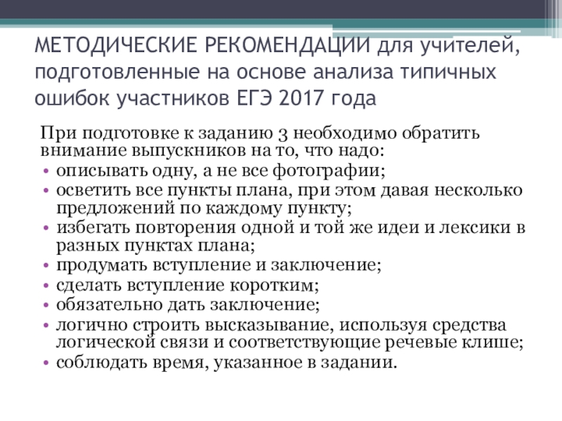 Слайд 2МЕТОДИЧЕСКИЕ РЕКОМЕНДАЦИИ для учителей, подготовленные на основе анализа типичных ошибок участников