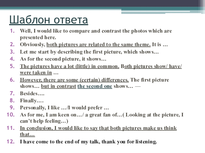 две фотографии нужно не просто описать, а подробно сравнить, включая детали;