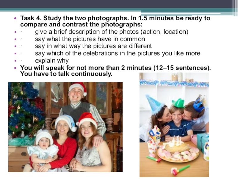 Слайд 15Task 4. Study the two photographs. In 1.5 minutes be ready to