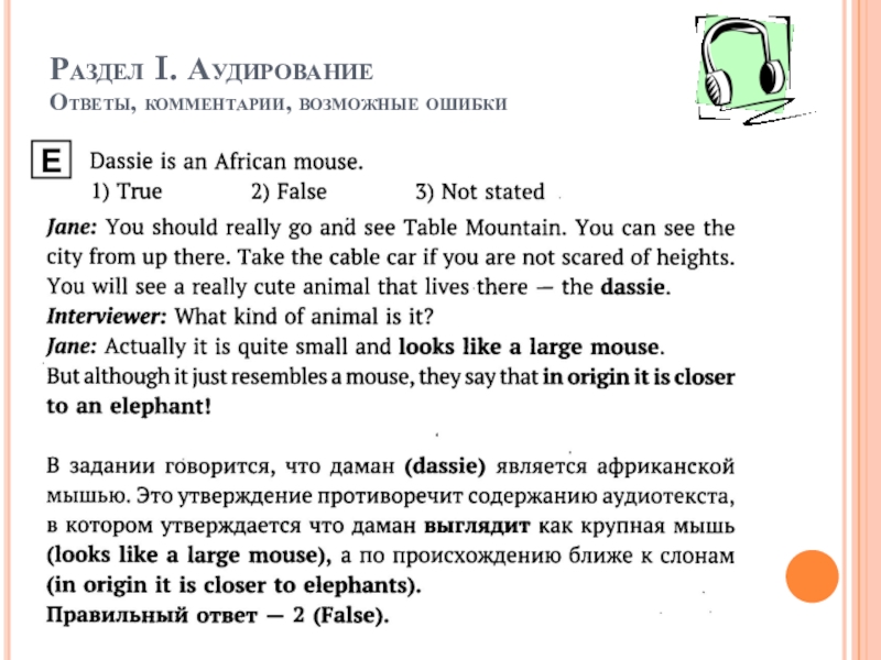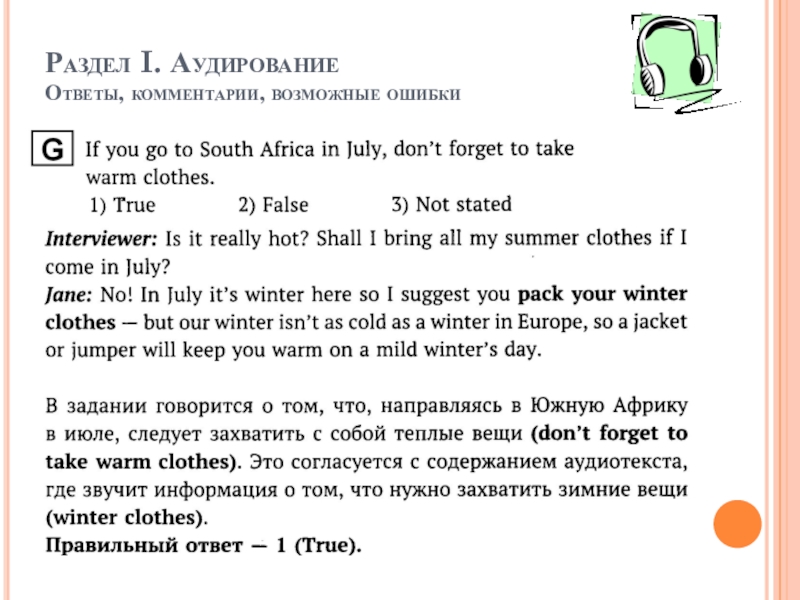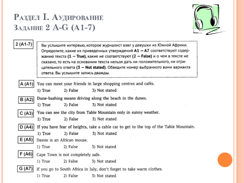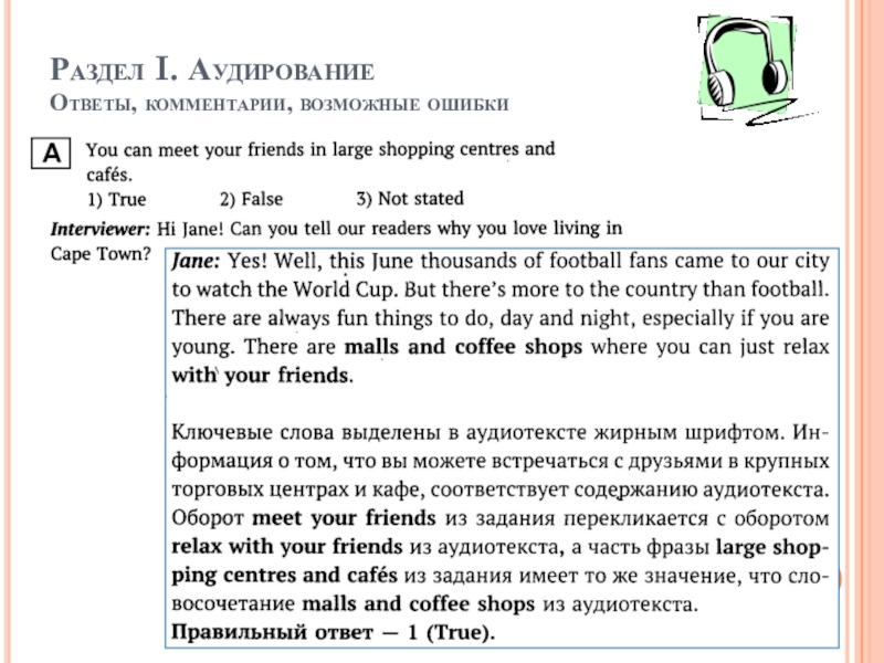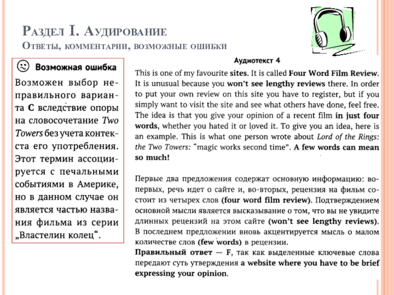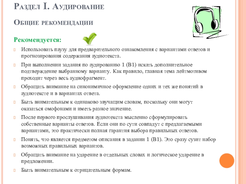 Раздел I. Аудирование