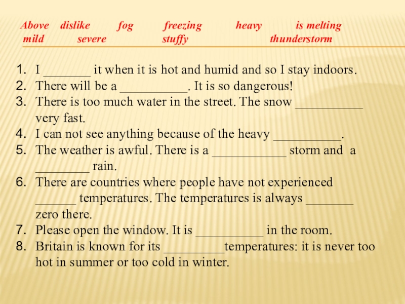 The weather is awful. There is a ___________ storm and a ________ rain.