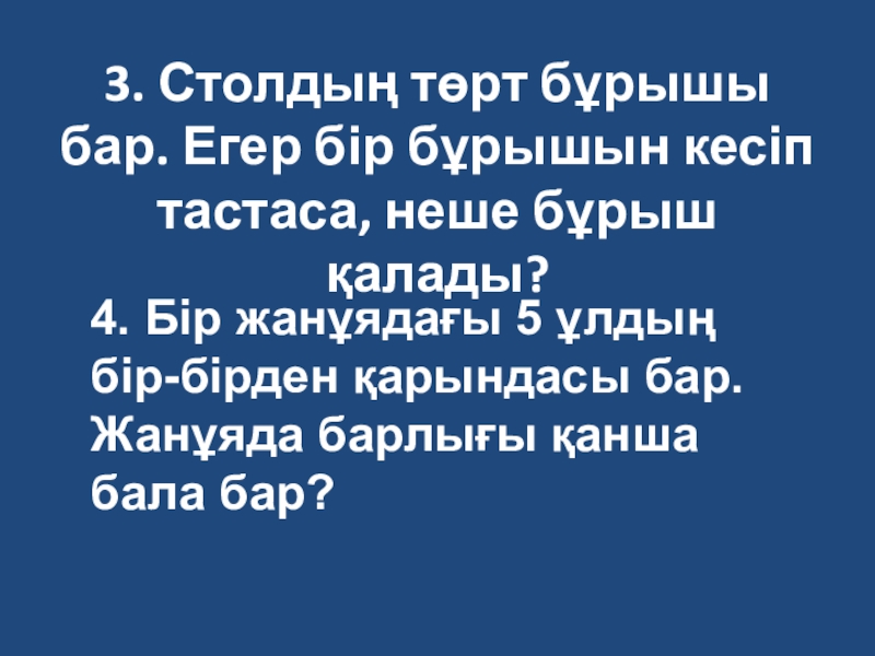 4. Бір жанұядағы 5 ұлдың бір-бірден қарындасы бар. Жанұяда барлығы қанша бала бар?