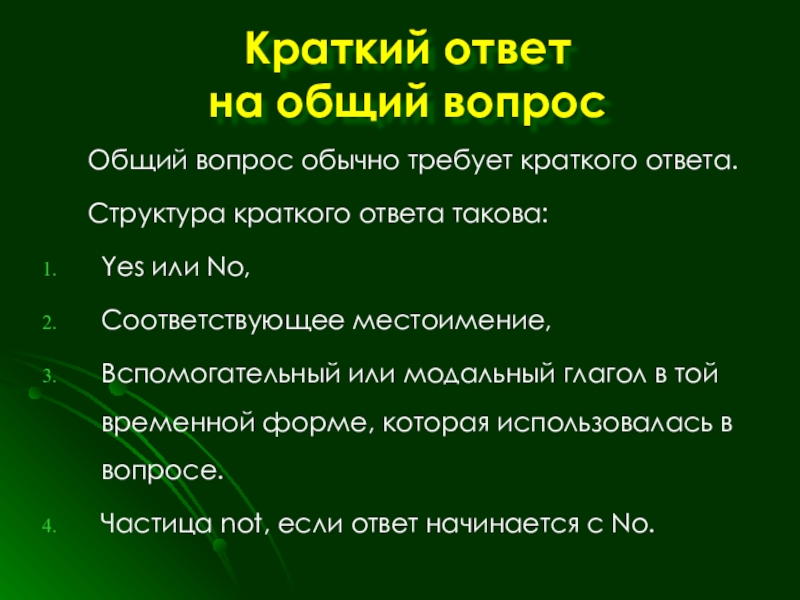 Вспомогательный или модальный глагол в той временной форме, которая использовалась в вопросе.