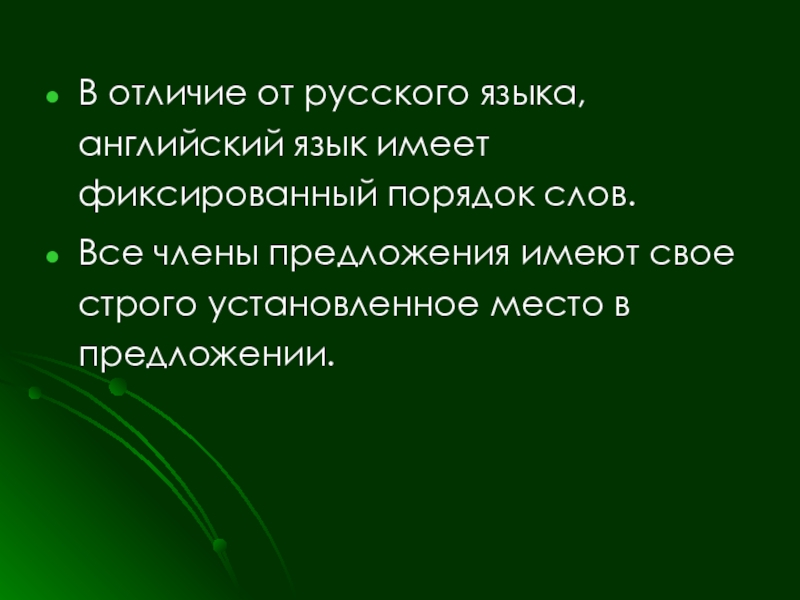 Слайд 2В отличие от русского языка, английский язык имеет фиксированный порядок слов.