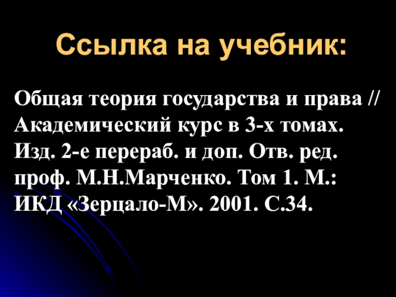 Ссылка на учебник:Общая теория государства и права // Академический курс в 3-х томах. Изд. 2-е перераб. и