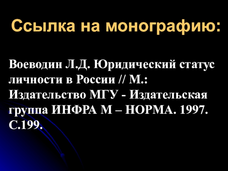 Ссылка на монографию:Воеводин Л.Д. Юридический статус личности в России // М.: Издательство МГУ - Издательская группа ИНФРА