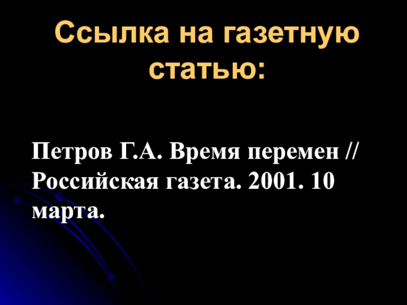 Ссылка на газетную статью:Петров Г.А. Время перемен // Российская газета. 2001. 10 марта.