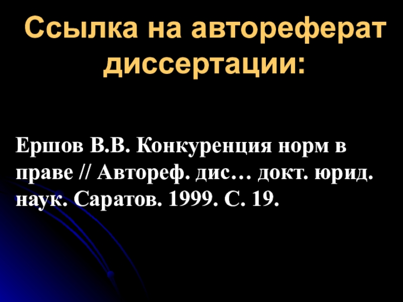 Ссылка на автореферат диссертации:Ершов В.В. Конкуренция норм в праве // Автореф. дис… докт. юрид. наук. Саратов. 1999.