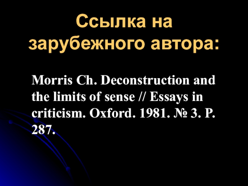 Ссылка на зарубежного автора:Morris Ch. Deconstruction and the limits of sense // Essays in criticism. Oxford. 1981.