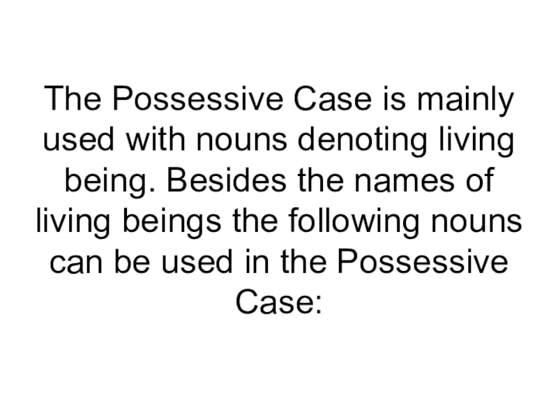 Слайд 5The Possessive Case is mainly used with nouns denoting living being.