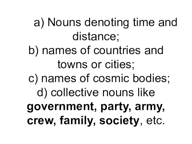 Слайд 6 a) Nouns denoting time and distance;