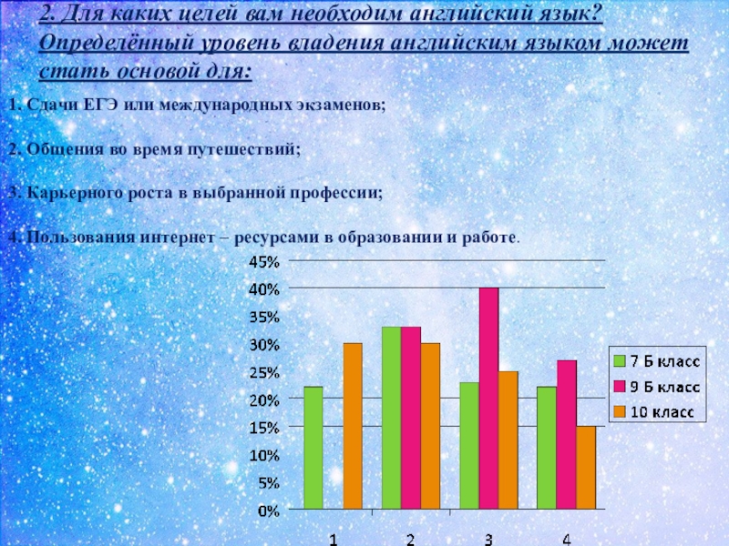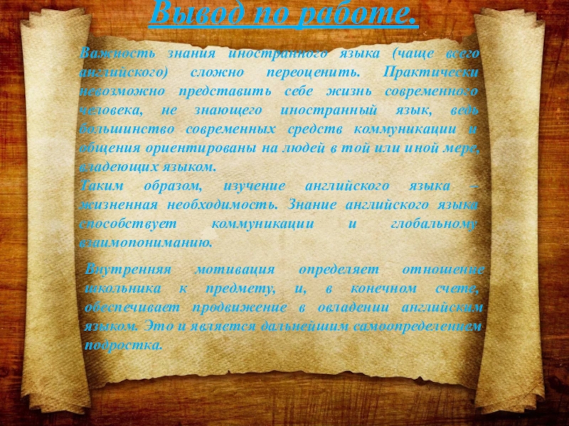 Внутренняя мотивация определяет отношение школьника к предмету, и, в конечном счете, обеспечивает продвижение в овладении английским языком. Это и является дальнейшим самоопределением подростка.
