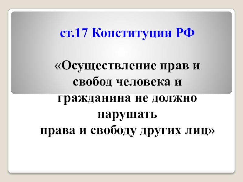 ст.17 Конституции РФ «Осуществление прав и свобод человека и гражданина не должно нарушать права и свободу других