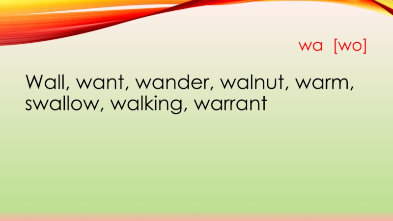 wa [wo]Wall, want, wander, walnut, warm, swallow, walking, warrant