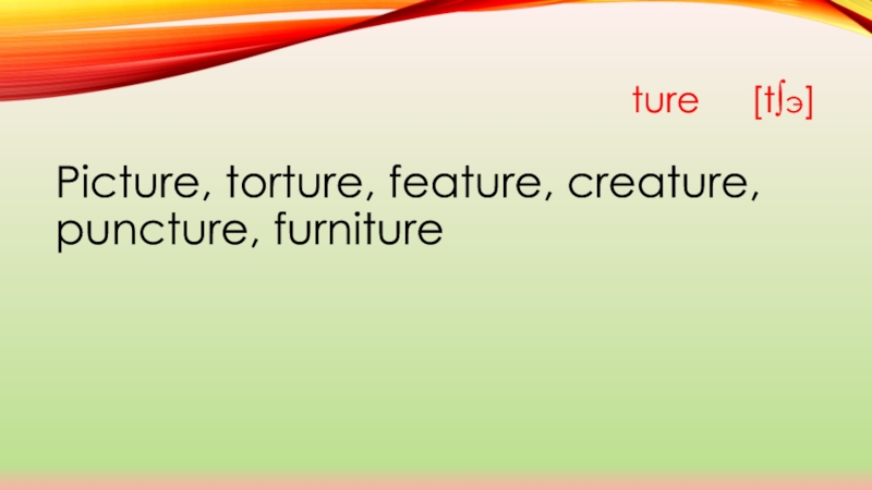 ture   [t∫э] Picture, torture, feature, creature, puncture, furniture