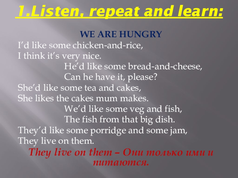 Слайд 21.Listen, repeat and learn: