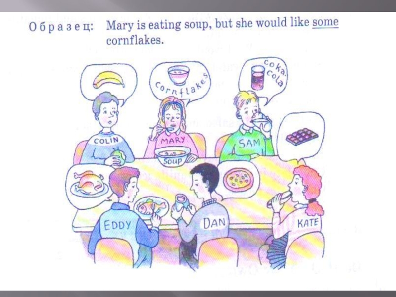 Слайд 54.Скажи, как ты объединяешь эти продукты, когда ешь.