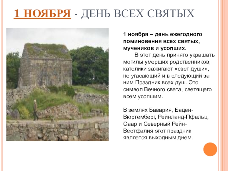 Слайд 521 НОЯБРЯ - ДЕНЬ ВСЕХ СВЯТЫХ