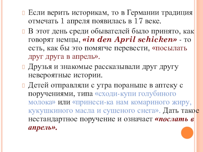 Слайд 16Если верить историкам, то в Германии традиция отмечать 1 апреля появилась