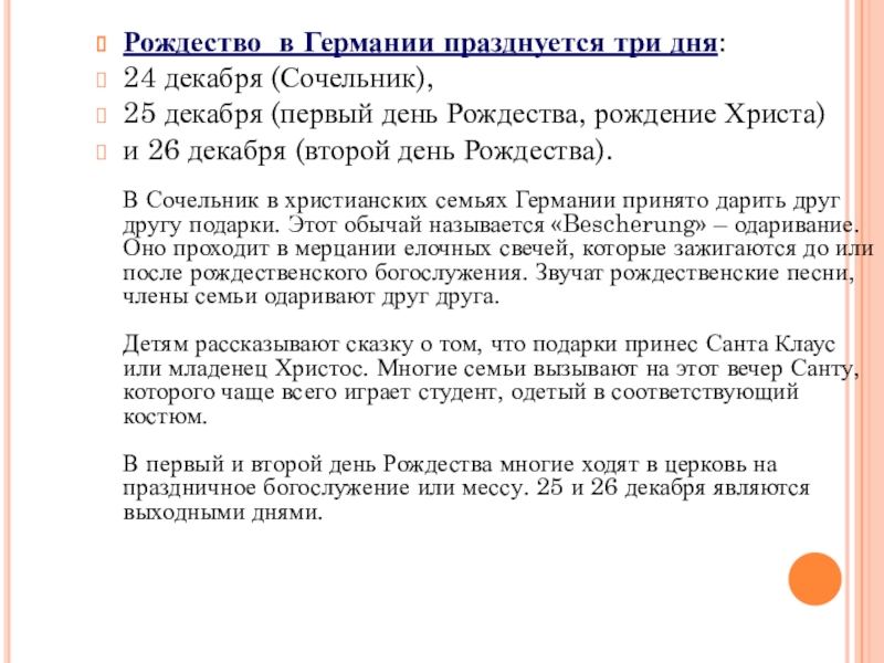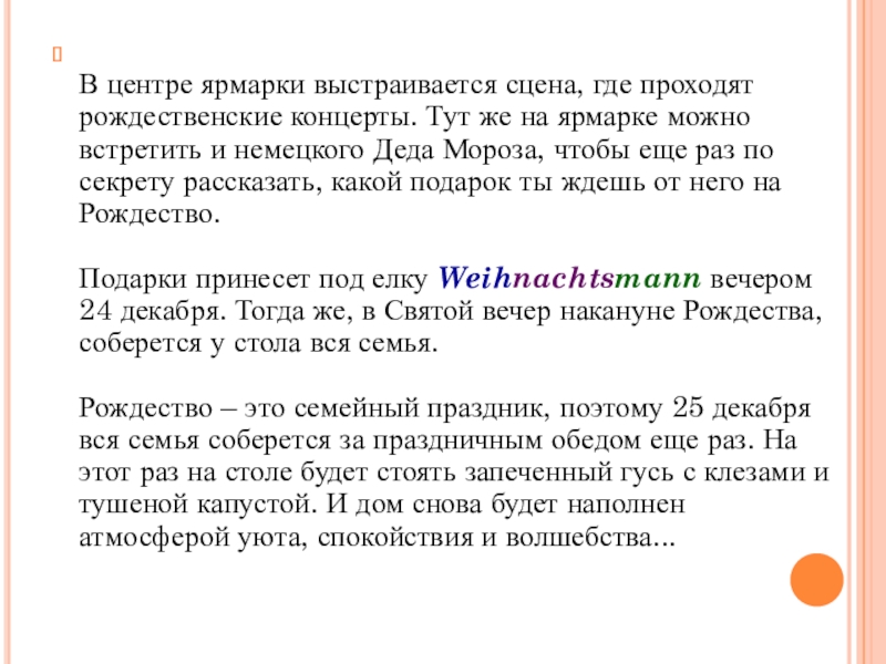 Слайд 78РОЖДЕСТВЕНСКИЕ ПРАЗДНИКИ В ГЕРМАНИИ НАИБОЛЕЕ ПОЧИТАЕМЫ ЖИТЕЛЯМИ, И ХОТЯ ОНИ СЧИТАЮТСЯ