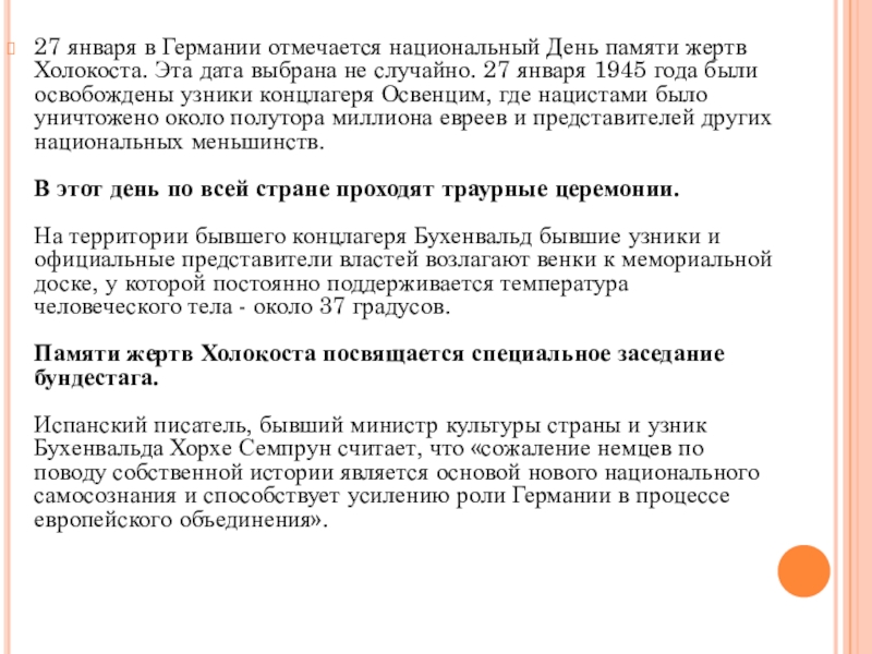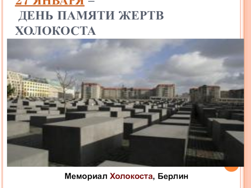 Слайд 1327 января в Германии отмечается национальный День памяти жертв Холокоста. Эта