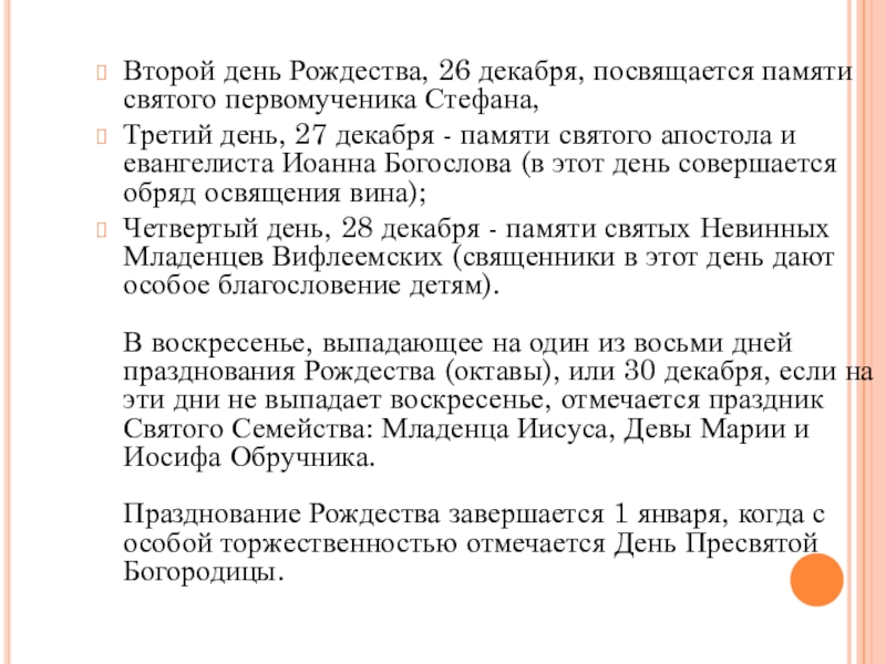 Слайд 70Второй день Рождества, 26 декабря, посвящается памяти святого первомученика Стефана,