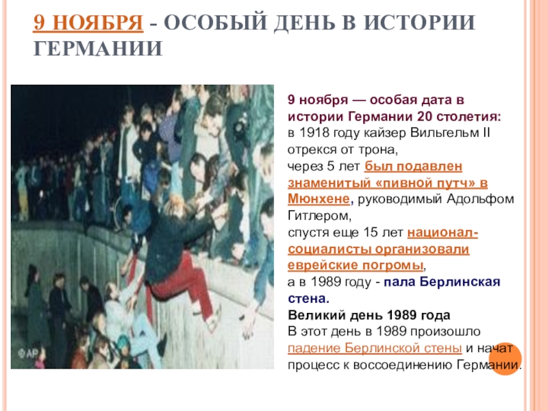 Слайд 539 НОЯБРЯ - ОСОБЫЙ ДЕНЬ В ИСТОРИИ ГЕРМАНИИ