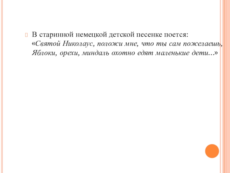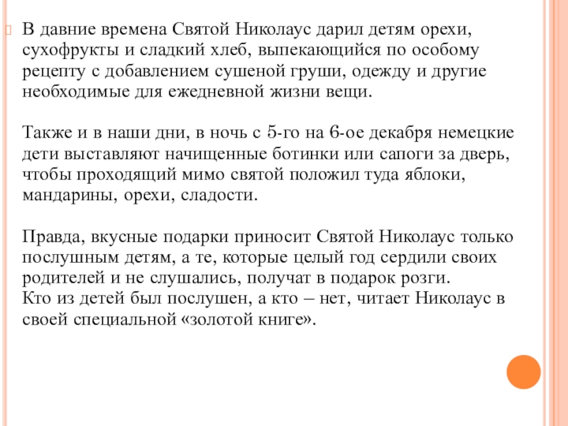 Слайд 61В давние времена Святой Николаус дарил детям орехи, сухофрукты и сладкий