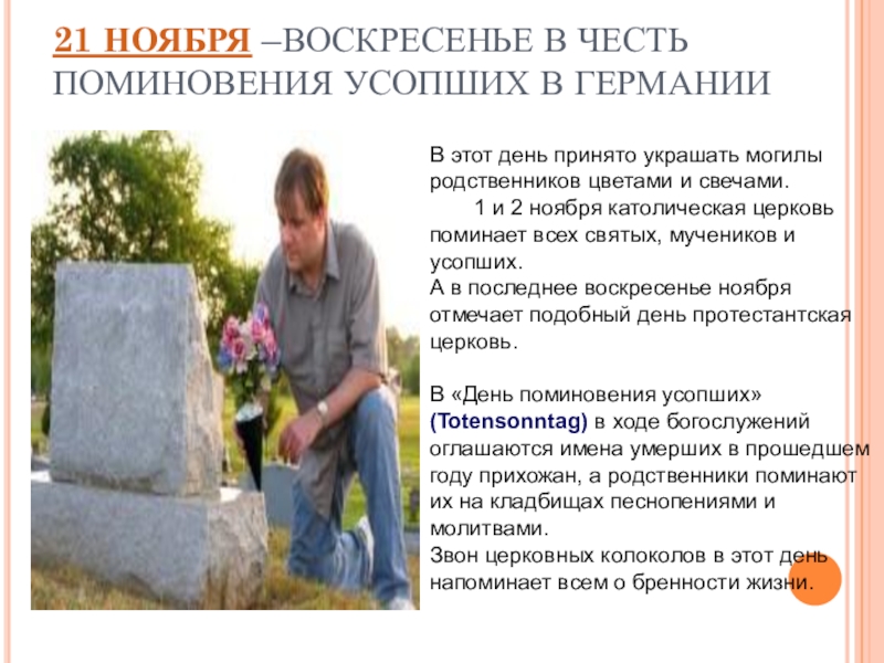 Слайд 5721 НОЯБРЯ –ВОСКРЕСЕНЬЕ В ЧЕСТЬ ПОМИНОВЕНИЯ УСОПШИХ В ГЕРМАНИИ