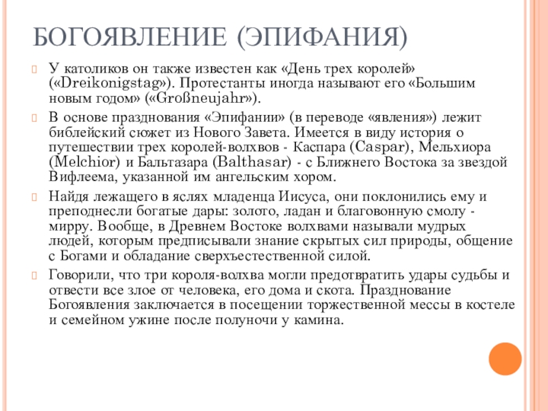 Богоявление (Эпифания) - традиционный христианский праздник, отмечаемый немцами