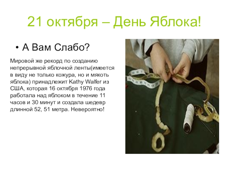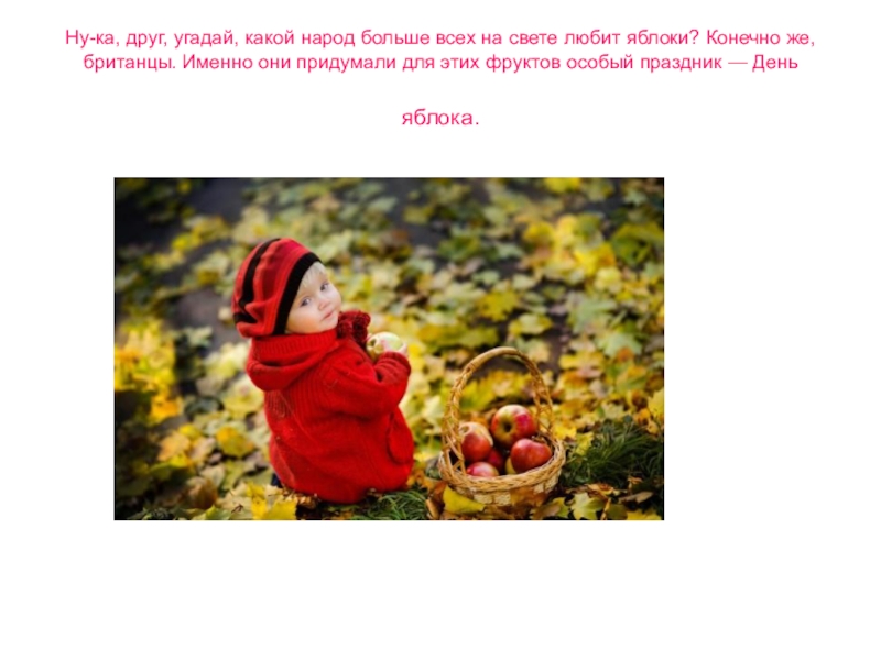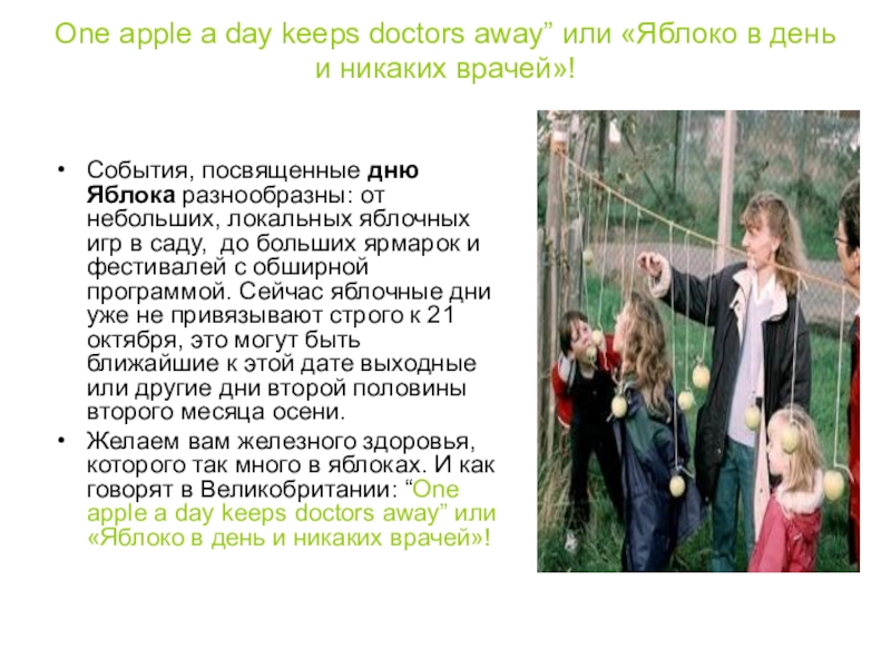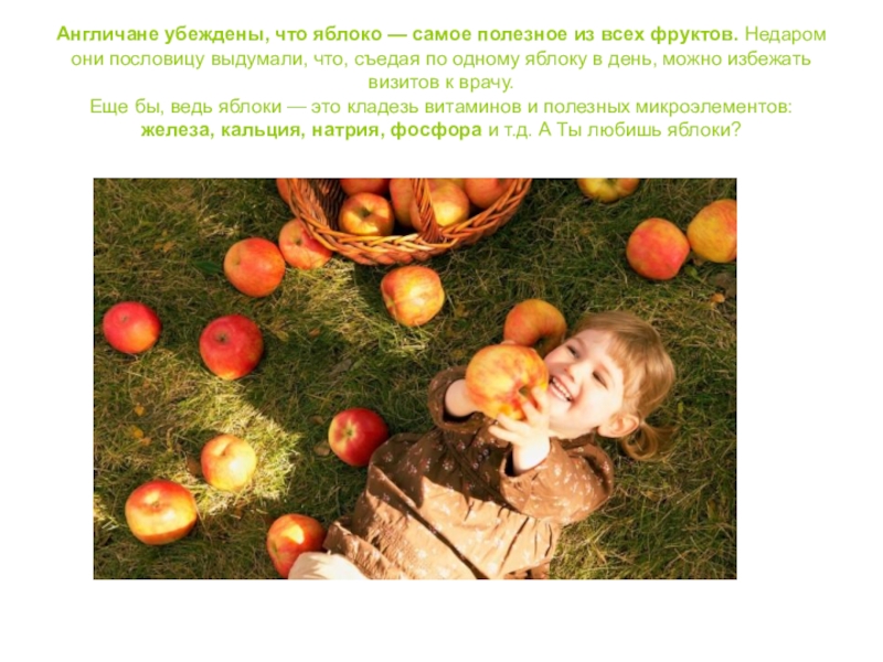 Желаем вам железного здоровья, которого так много в яблоках. И как говорят в Великобритании: “One apple a day keeps doctors away” или «Яблоко в день и никаких врачей»!