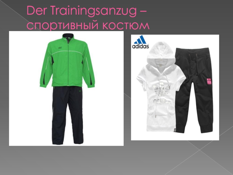 Слайд 13Der Trainingsanzug – спортивный костюм