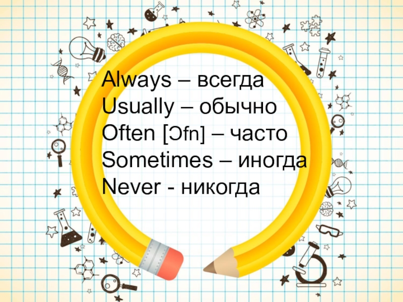 Always – всегдаUsually – обычноOften [Ɔfn] – частоSometimes – иногдаNever - никогда